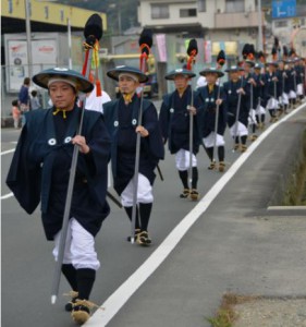 御長柄の槍先は現在は竹光に替えていますし、平成に入って修理し、漆を塗り替えて石突と呼ばれる柄尻の部分も新しいものに替えていますが、槍そのものは藩政時代当時のものが現役でがんばっております。