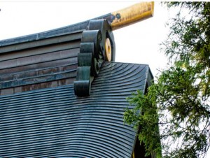 ちなみに、現在の鬼瓦はこちら↓。以前の形状そのままに銅板で忠実に再現しています。