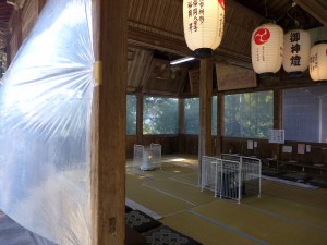 それ以外の日もお受けしているのですが、通常は予約制。この3日間は予約なしでご祈祷をいたします。直前の天気予報は雨。寒さが予想されましたので、拝殿の周りに透明のシートを張って寒さ対策!ストーブに、ホットカーペットも完備でぽかぽか?です(^^)v