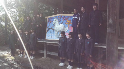 昨日は、大洲高等学校美術部の生徒さんたちが、恒例の大絵馬を奉納してくださいました。今年で14年目でしょうか。早いものです。毎年楽しみにされている地域の方も多く、この大絵馬は当社に“なくてはならない風景”になりました。