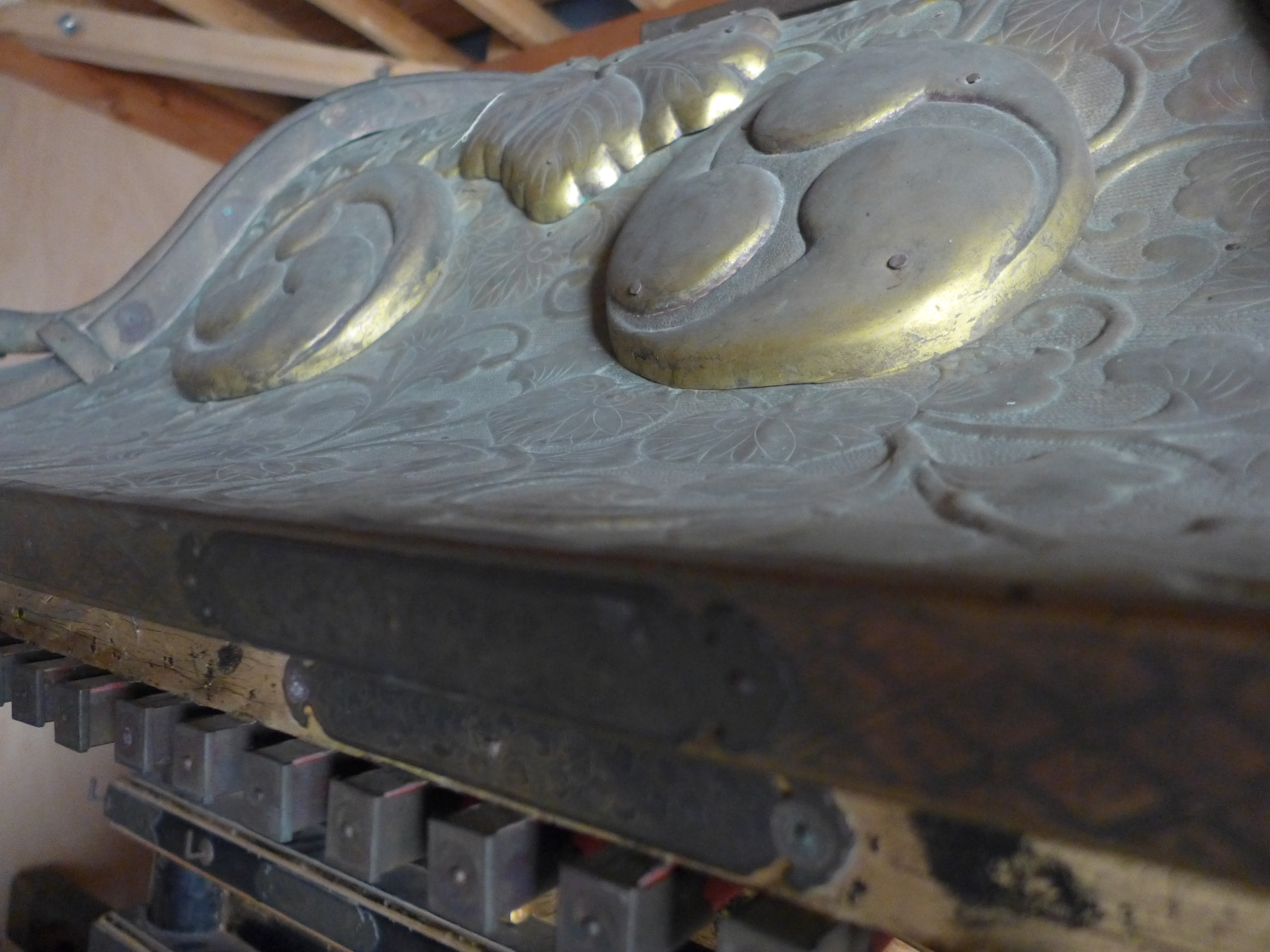 漆を塗り直し、メッキもやり直しますので、戻ってきたころにはピカピカになりますが、歴史を感じさせる経年美があっただけに少しばかり残念な気もします。ただ、これも次の100年、200年のため。そして何よりこの御神輿で領内をまわられる大神様にお喜びいたけるよう、しっかりした修理を施さねばなりません。残りの二基については、来年の秋祭り以降に広く寄付を募り、順次修理を行っていく予定でおります。