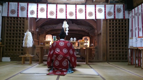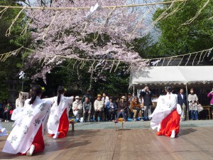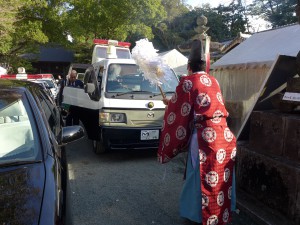 前日から続く雨でどうなることかと思いましたが、お祭り前の10時にはピタリと止み、無事境内でお神楽や巫女による舞などの奉納行事をとり行うことが出来ました。