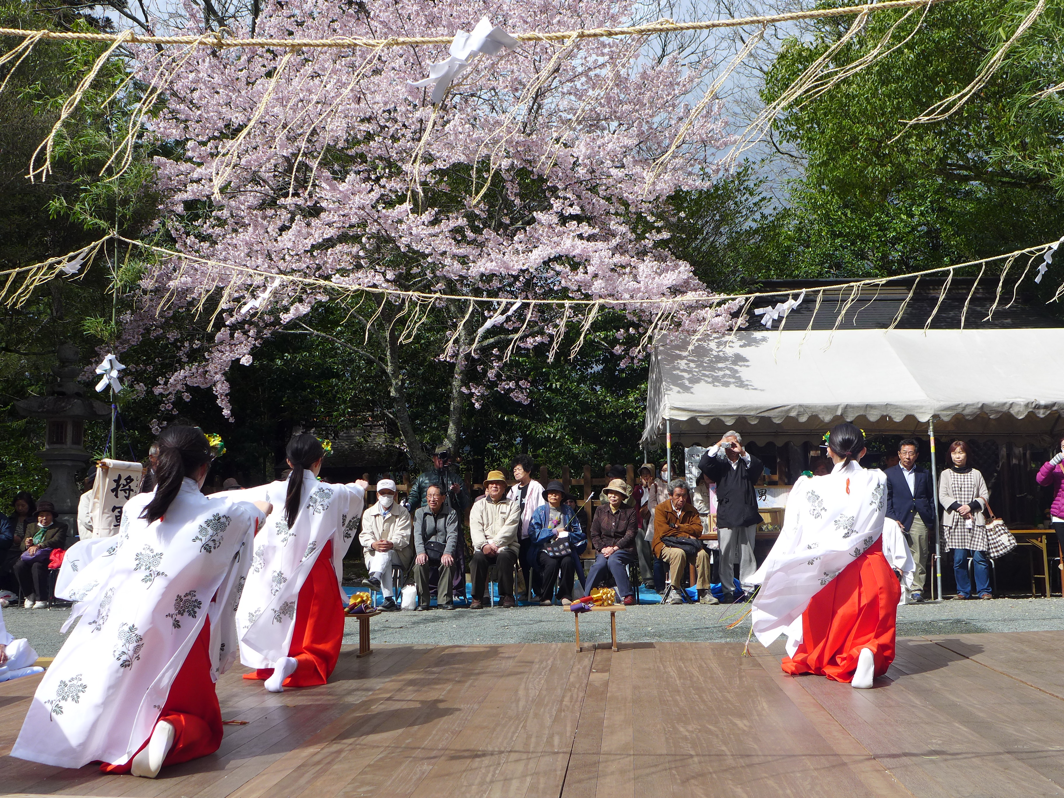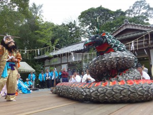 この春祭りは、もともと境内社であり、大洲藩主の祖神を祀る三祖神社の例祭です。この大洲の発展と五穀豊穣を祈念します。歴代藩主は、この春祭りにお神楽を奉納するのが習わしでした。現在でもその伝統を受け継ぎ、有志の手によってお神楽が奉納されています。今年は八幡浜の川名津神楽さん。ヤマタノオロチの動きが迫力があって皆食い入るように見つめていたのが印象的でした。
