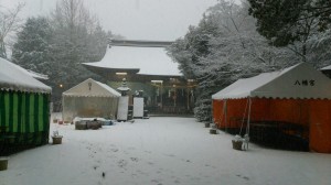 当社でも、元旦の早朝より積雪に見舞われ、神社へと続く道路の雪かきに追われました。禰宜も初めて元旦の午前中を境内の外、作業着で過ごしました。