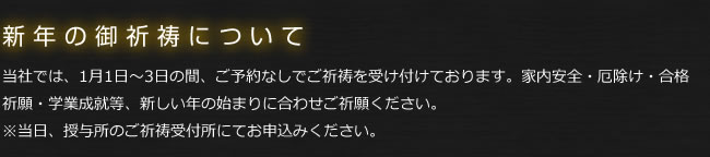 初詣は、1年間私達をお護りくださった大神様に感謝申し上げるとともに、新しい年を寿ぎ1年の無事と平安を祈願するものです。
